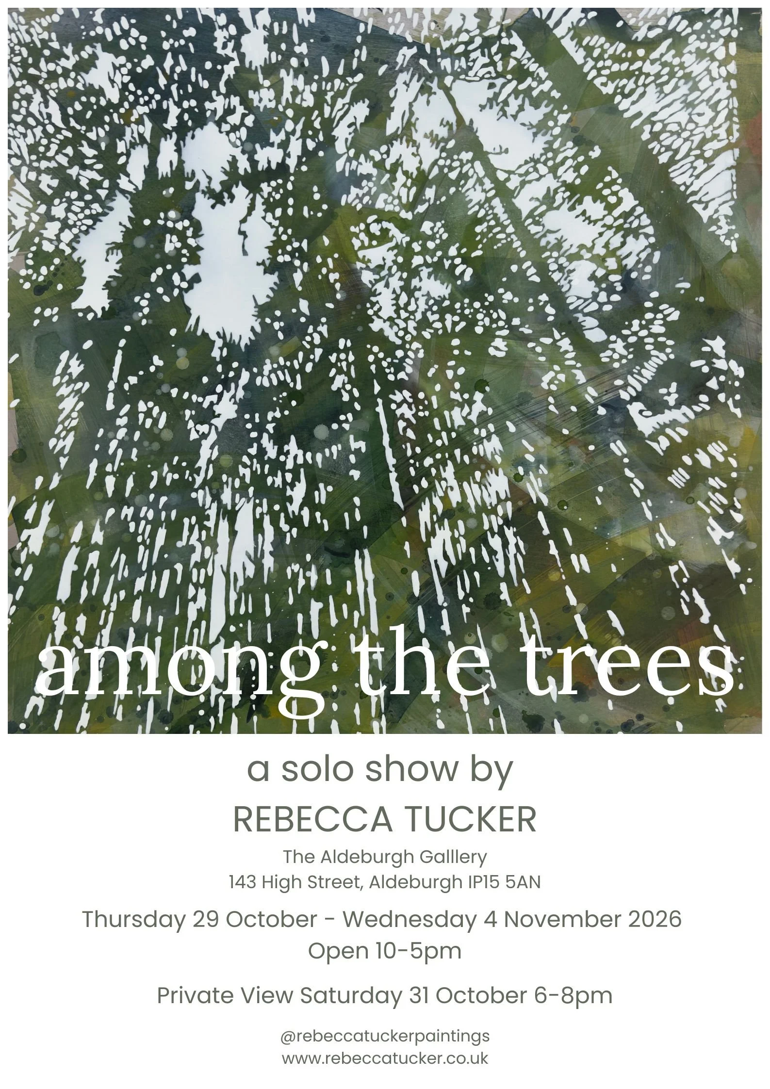 among the treesA solo exhibition of work inspired by the poet Mary Oliver.29 October - 4 November 2026The Aldeburgh Gallery143 High StreetAldeburghSuffolkIP15 5AN